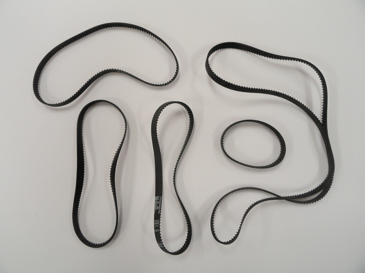 The timing belt kit consists of 5 timing or drive belts. You can identify which belt you are replacing by reading the description printed on your belt.
