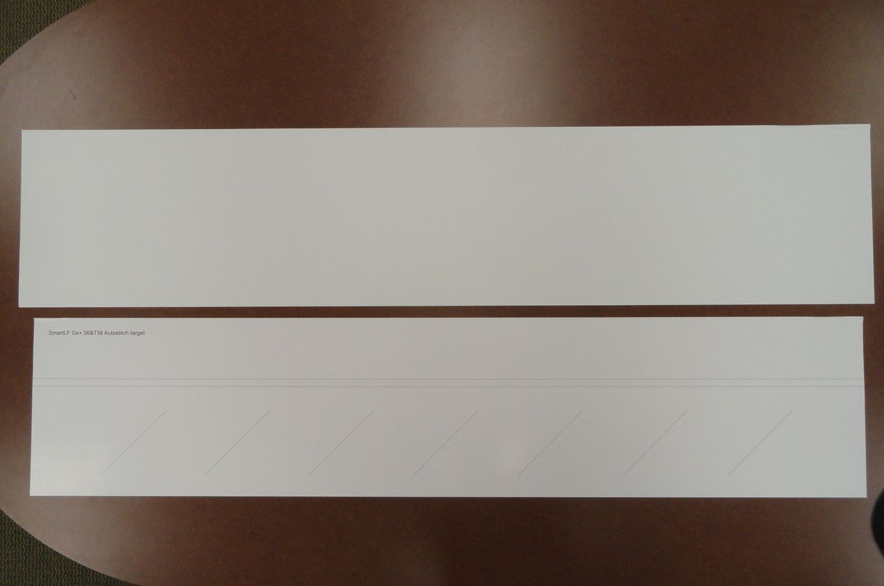 Consists of one blank, white sheet for normalization and one stitch target with horizontal and diagonal lines.