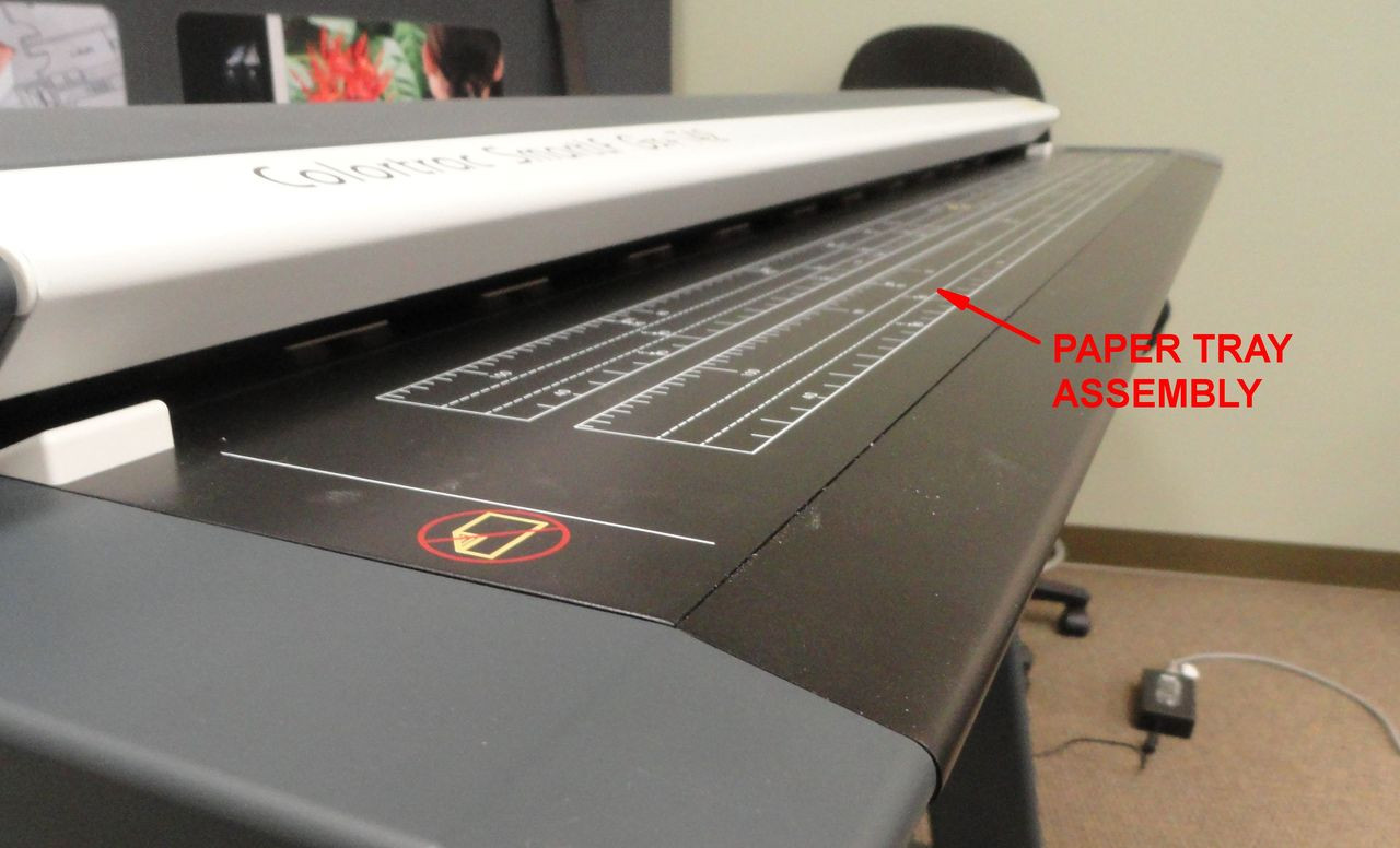 The paper tray (feed table) assembly for Colortrac Gx+42 scanners.